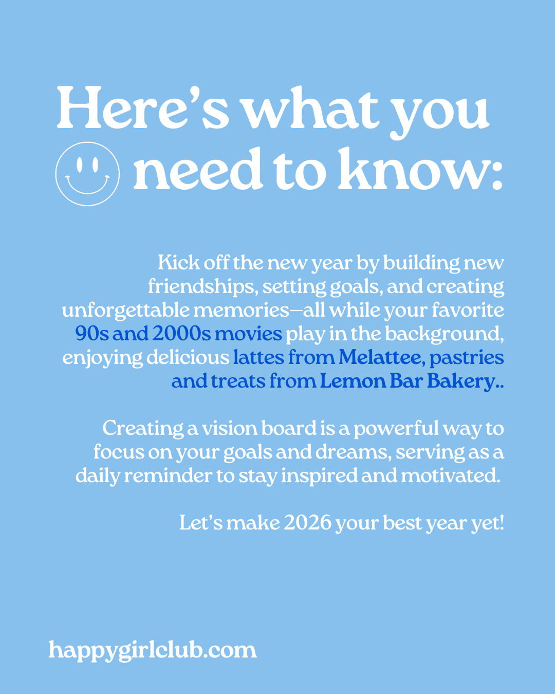- A fun, inclusive space to set intentions for the year with likeminded girls.